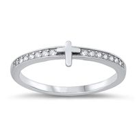 シルバージュエリー925スターリングシルバーロジウムメッキキュービックジルコニアパヴェクロスリング女の子用